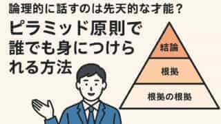 コミュニケーション論理的に話すのは先天的な才能?ピラミッド原則で誰でも身につけられる方法 論理的に話せないと悩む方へ。本記事では名著『考える技術・書く技術』を基に、誰でも習得可能な「主張のピラミッド」手法を解説。論理性とは「正しさ」ではなく「構造」です。エンジニアである筆者の実体験を交え、説得力を高める技術を紹介します。 2025.12.14コミュニケーション人材育成