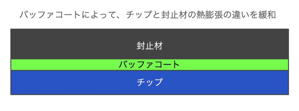 まず第一に挙げられるのは、1988年から採用されてきた、その歴史です。半導体材料は、一度採用されれば長きに渡り使われ続けるのが通例になっています。もちろんプロセスに革新が起こるタイミングで要求に応じた製品に置き換わるのが通例ですが、バッファコートは採用から今まで、常に必要とされてきました。