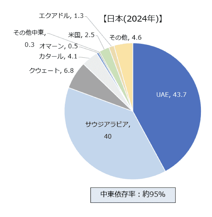 日本のエネルギー・原材料の現状:原油95%・ナフサ40%の中東依存度