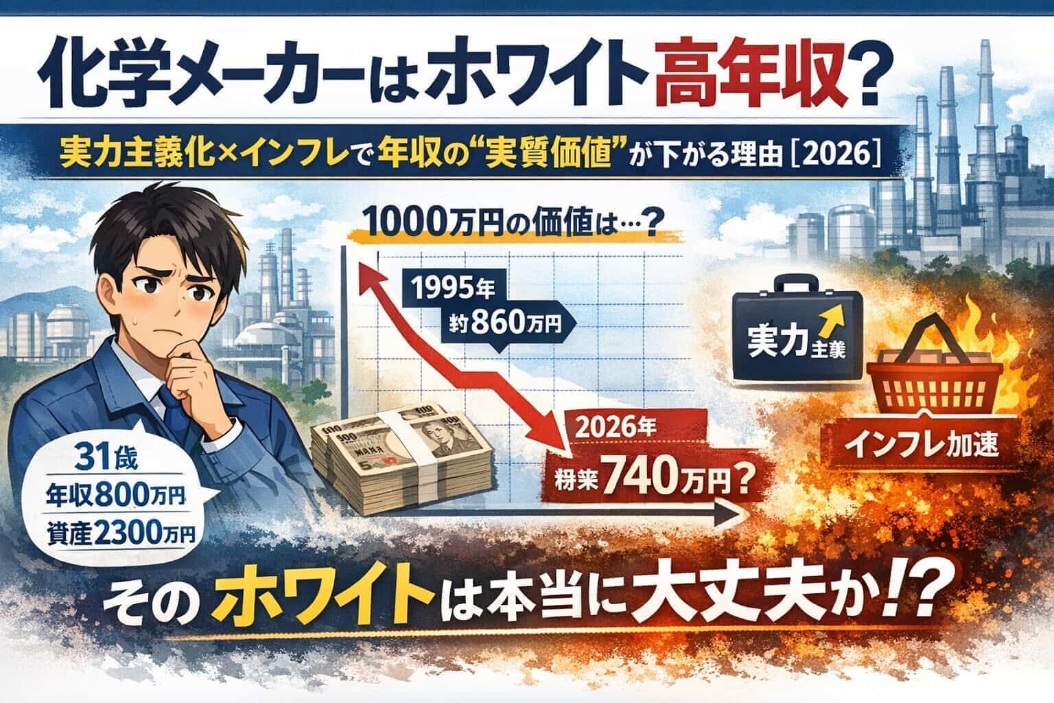 本記事では、化学メーカーの中の人である私が、自身の給与・資産形成のリアルを公開するとともに、これからJTCを生き抜くために知っておくべき「残酷な変化」について詳しく解説します。あくまでイチ個人、イチ企業の事例の紹介に留まるため、その点ご留意ください。