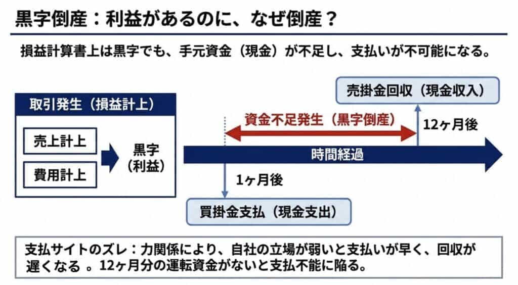 黒字倒産のメカニズム:なぜ「利益」があるのに「現金」がないのか